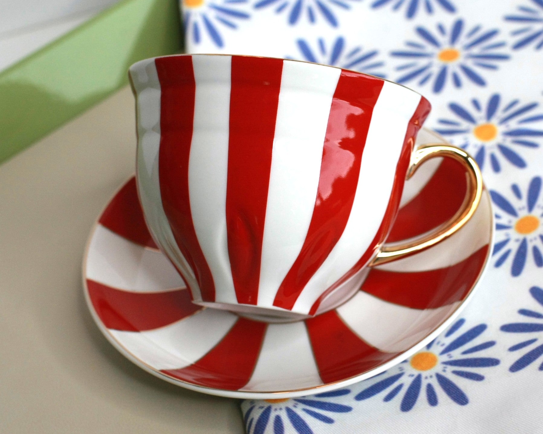 Feel like a guest at a Parisian cafe when drinking tea from this beautiful Red and White stripe porcelain cup.