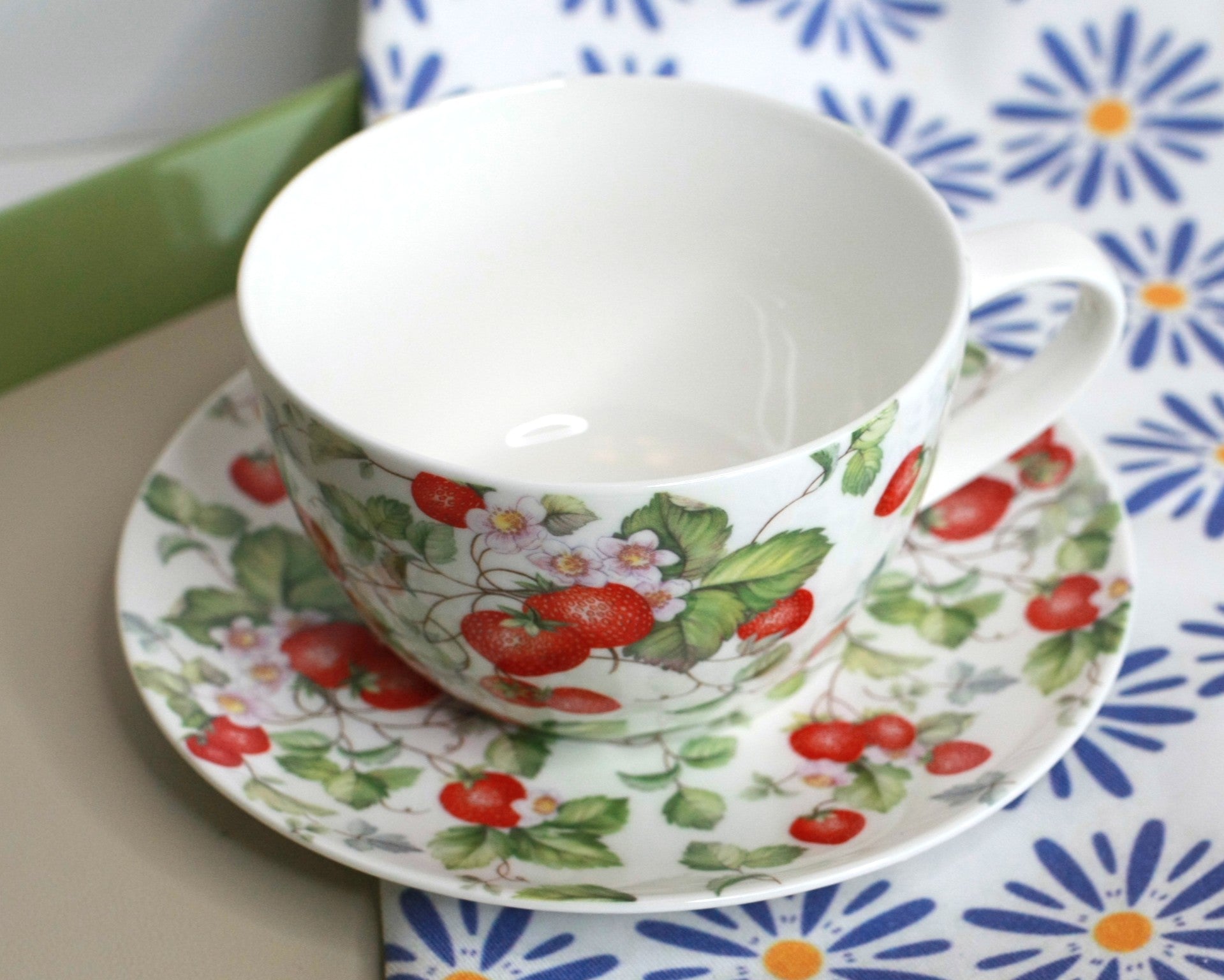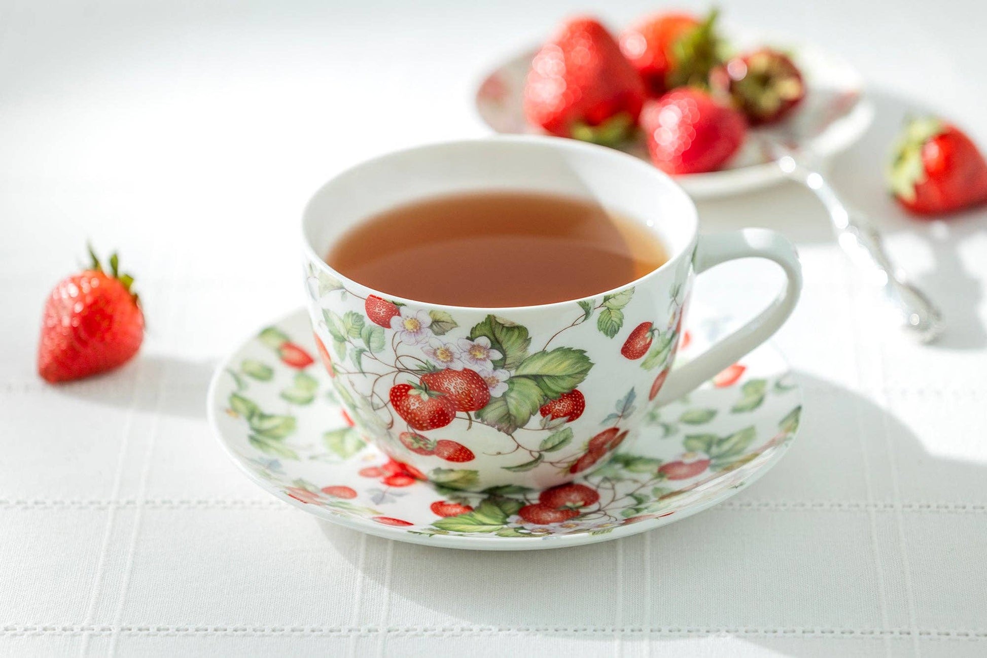 Strawberries Porcelain Cup and Saucer - jumbo 15 oz capacity